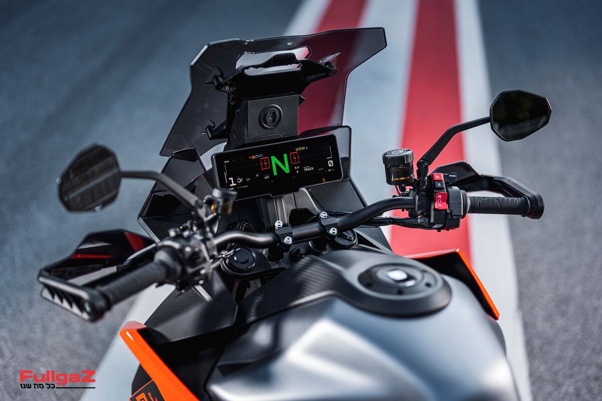 וזה מוביל אותנו למסך החדש, כאמור בגודל "8. זהו מסך טאץ' שפועל מצוין עם כפפות, גם כפפות עבות, כשכל השליטה יכולה להתבצע ממסך המגע עצמו או מהכפתורים. בגלל כמויות האלקטרוניקה הבלתי נתפסות המסך עמוס בתפריטים ובתתי־תפריטים, אבל הוא מסודר בצורה אינטואיטיבית מאוד והוא קל להבנה ולשליטה. הרוכב יכול לכוון את כל הפרמטרים בכל אחד ממצבי הרכיבה, ובנוסף יש גם מצב קאסטום שאותו הרוכב יכול לכוון לפי העדפותיו. המחשב שומר את כל השינויים, כשניתן להחזיר את הפרמטרים להגדרות היצרן. רמה מעל מה שהכרנו עד עכשיו.