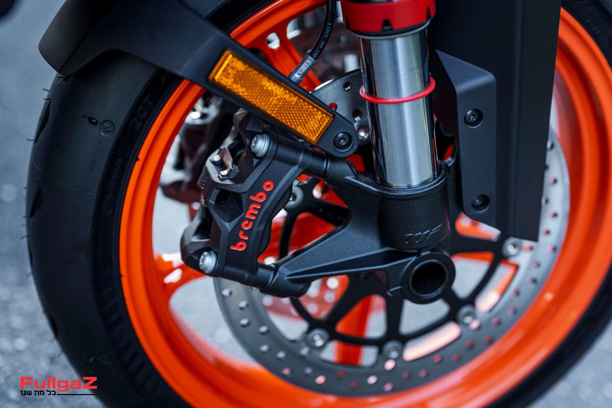 מבחינת ארגונומיה ותנוחת רכיבה יש כאן העלאה של מרכז הכובד עם גובה מושב ומרווח גחון שמטפסים ב-15 מ"מ, וזה מתאפשר בזכות זווית שונה של הזרוע האחורית, ובתמורה יש עוד 3° של זווית הטיה בפניות. זה מצריך גם התאמות בחיבורי שלדה והזרוע האחורית. מערכת הבלימה כוללת קליפרים של ברמבו מסוג Stylema מונובלוק ומאסטר צילינדר MCS של ברמבו. הדיסקים הקדמיים גדלו בקוטר ב-20 מ"מ וכעת עומדים על 320 מ"מ. הצמיגים כאן הם מישלין Power Cup 2.