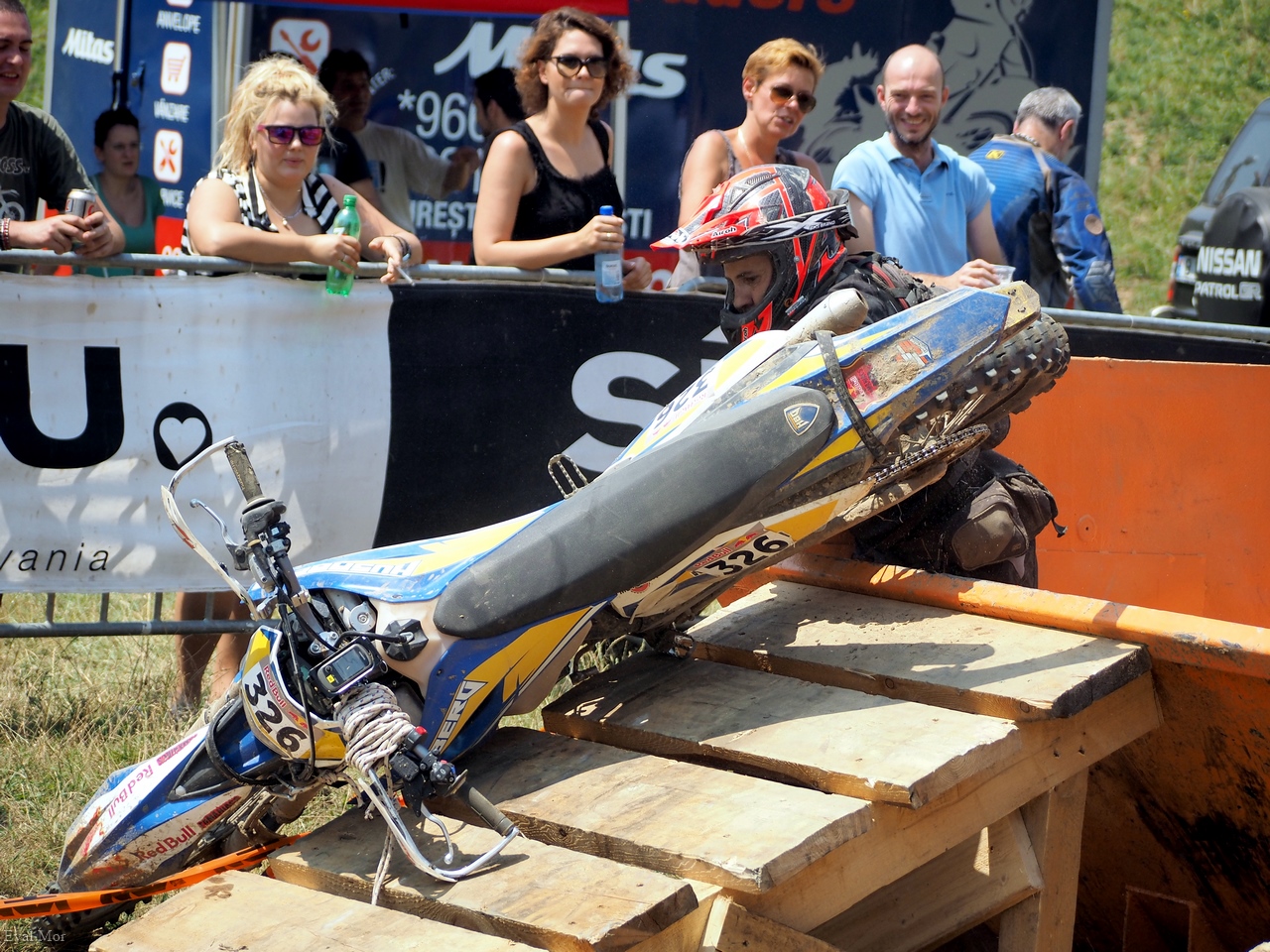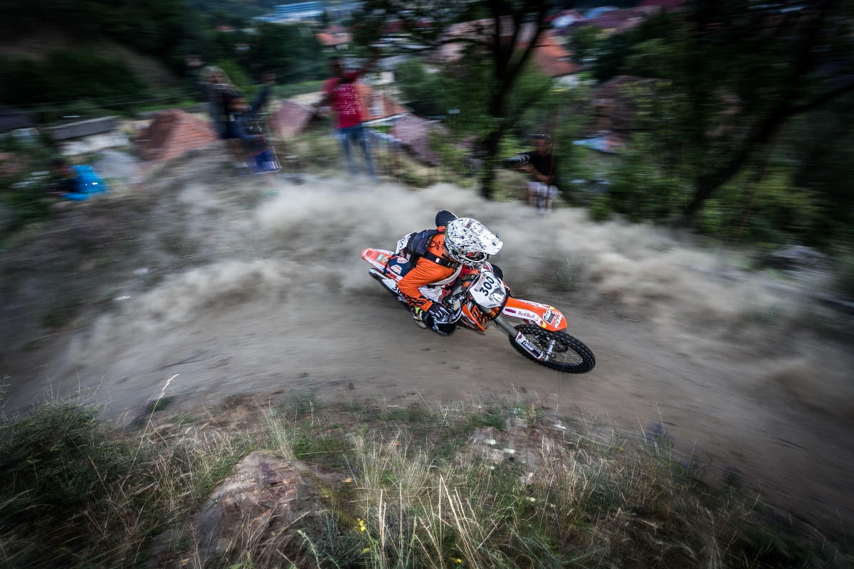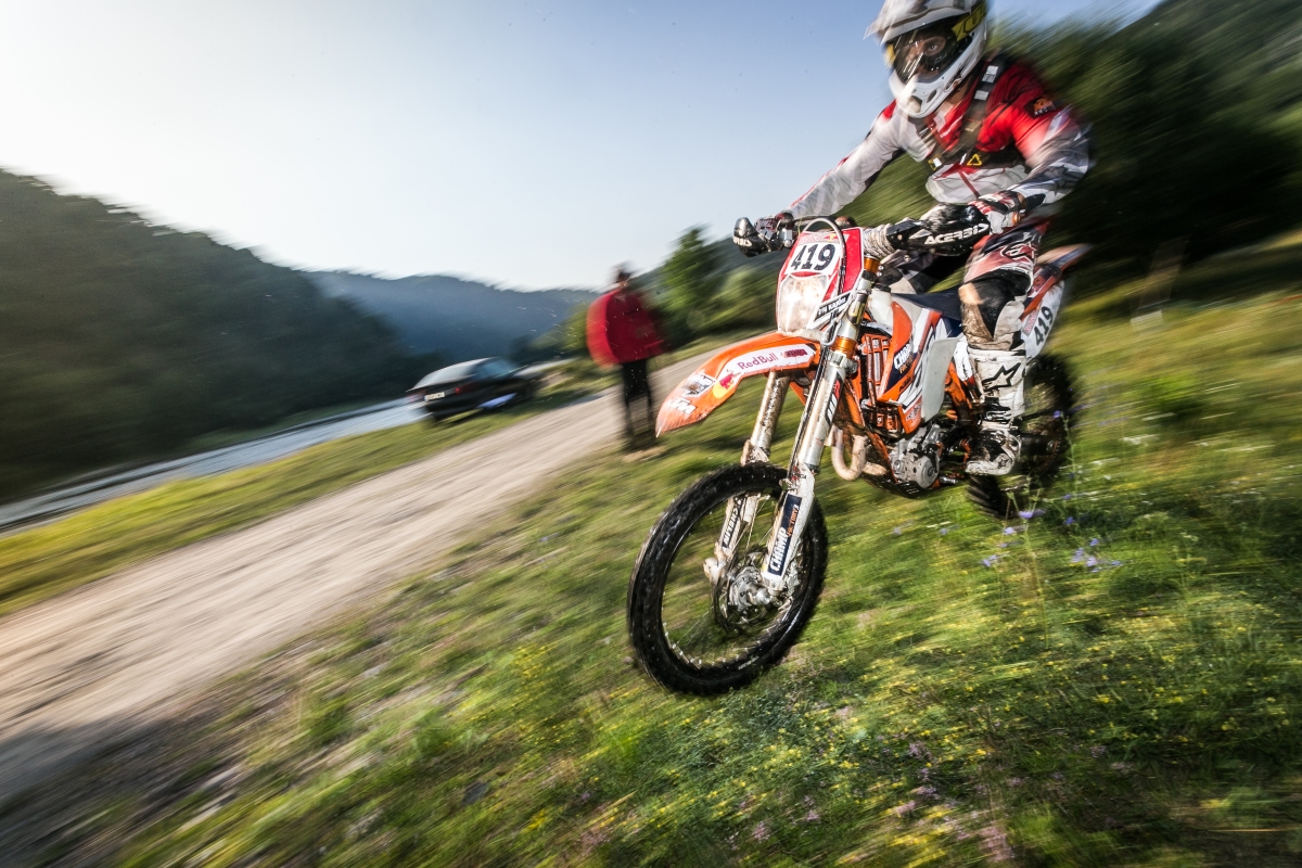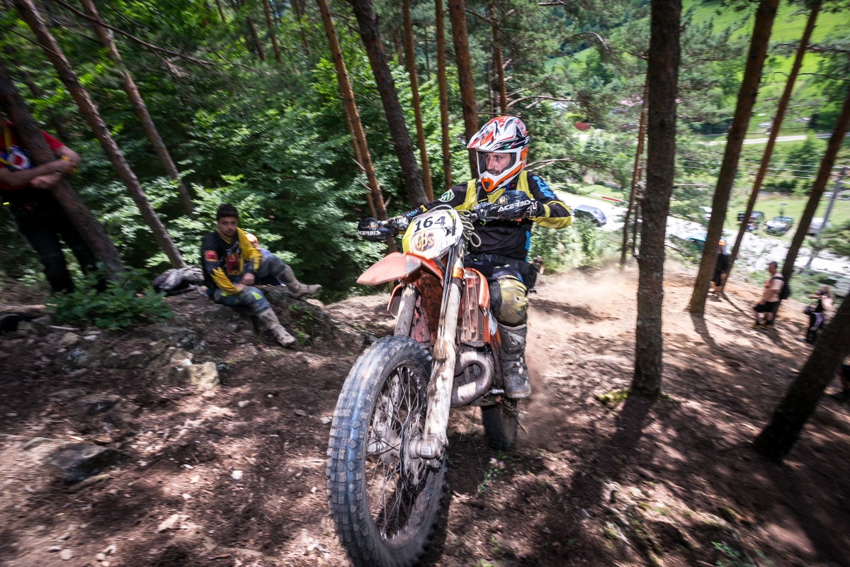 "ביום השני, קצת לפני נקודת השירות של מחצית היום, אני רוכב בנחל זורם במגמת עלייה. הנחל עמוס בסלעים, גזעים, שורשים וכל הטוב שיש לרומניאקס להציע. שני מתחרים רוכבים לפניי ואני מרגיש שאני יותר מהיר מהם, במיוחד בקטעים הטכניים יותר, אבל קשה עד בלתי אפשרי לעקוף. מגמת העלייה מתחדדת, הסינגל מגיע לפנייה שמאלה ואז ימינה, וצמד הרוכבים נתקע. אני מרים את הראש וקולט קו שחותך את העיקול, אבל הוא מאתגר מאוד – תלול עם מדרגות סלע. חושב לעצמי שאם אני מצליח לעבור את המכשול אני עוקף את הצמד ועף קדימה, ותוך כדי מחשבה שומע אופנוע מגיע מאחור במהירות. מסתכל אחורנית ורואה את לטי (אנדראס לטינביכלר – רוכב אקסטרים-אנדורו מצטיין מקטגוריית הגולד) עם רצח בעיניים, תוקף בדיוק את הקו שעליו חשבתי, ונעלם. חייכתי חיוך גדול בתוך הקסדה, פתחתי גז ועליתי את מדרגות הסלע החלקלקות והתלולות גם אני – לטי סטייל. עקפתי את השניים והמשכתי להתקדם מבסוט – אני ולטי חושבים אותו הדבר.