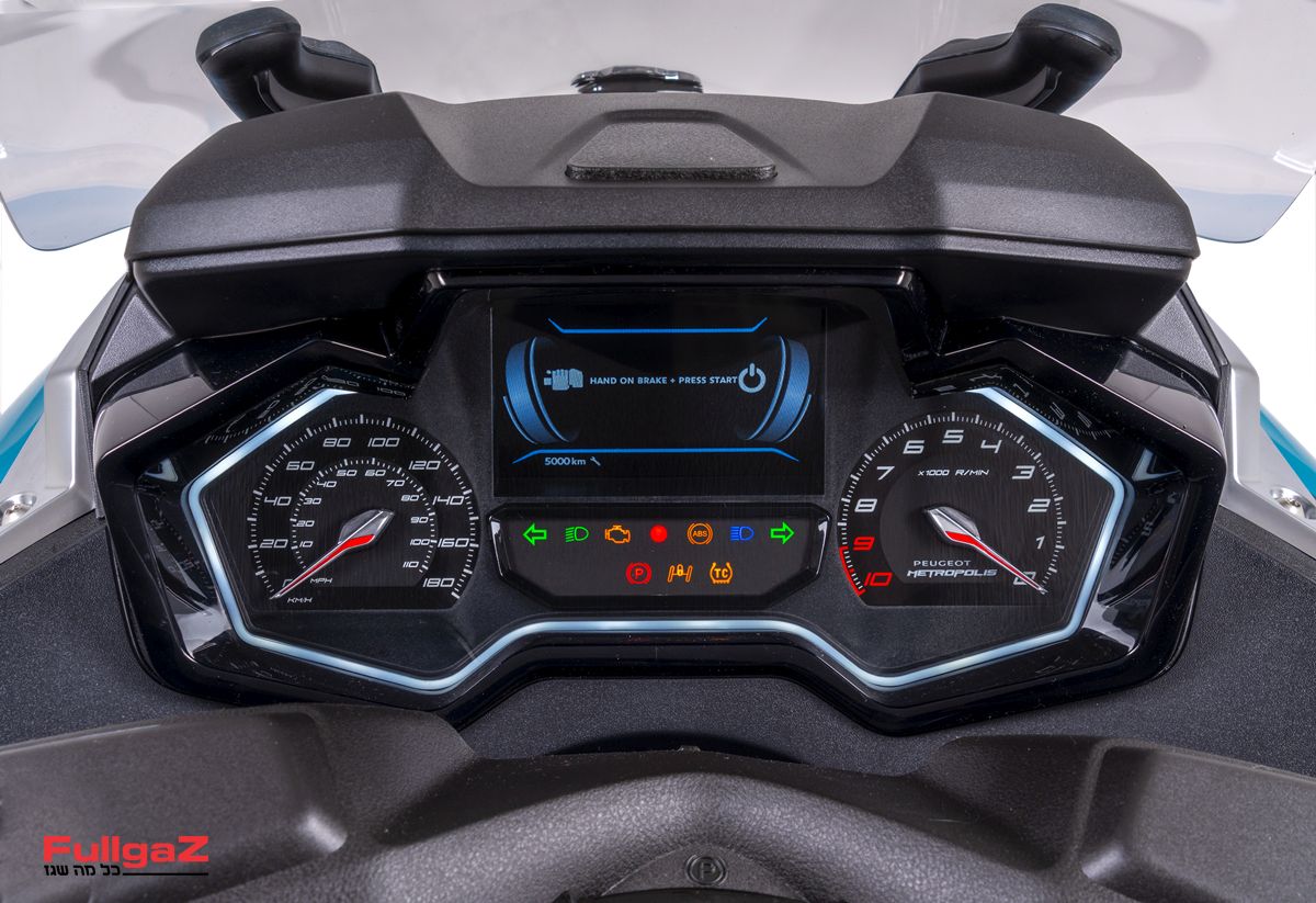 הרשימה של המטרופוליס היא הארוכה ביותר. מפתח קרבה, בלם חניה אלקטרוני, וכאמור – מגן רוח מתכונן. יש תא כפפות גדול בנוסף לתא טלפון הכולל שקע USB. יש וו-תלייה מעל למשטח הרגליים השטוח. תא המטען הראשי שטוח ואין אפשרות לאחסן קסדה מתחת למושב, אבל יש פתח נוסף מאחור, ושם התא יותר עמוק ויכיל קסדה אחת. אמנם הוא היחיד משלושת הנבחנים המאפשר אחסון לקסדה אחת בלבד, אבל הוא גם היחיד שמאפשר מטען ארוך כדוגמת באגט או גיליון שרטוט מגולגל, בזכות אורכו של תא המטען. פקטור חשוב לאדריכלים, אמנים וחובבי פחמימות צרפתיות. כמו ל-MP3 יש לו תאורת LED כמעט מלאה – התאורה הראשית עדיין מסורתית. קיים פס LED-ים על המתלה הקדמי אשר נשלט ממתג בצידו הימני של הכידון – אך הוא אינו עובד יחד עם התאורה הראשית. לוח השעונים שלו גם הוא מורכב משני שעונים אנלוגיים וביניהם מסך LCD עם שפע נתונים. אולי אפילו יהיה יותר מדויק לומר עומס של נתונים, שכן מרוב נתונים ואיורים קשה לקרוא אותו במבט חטוף. הגימור שלו טוב, ממש מעט אחרי שני המתחרים.