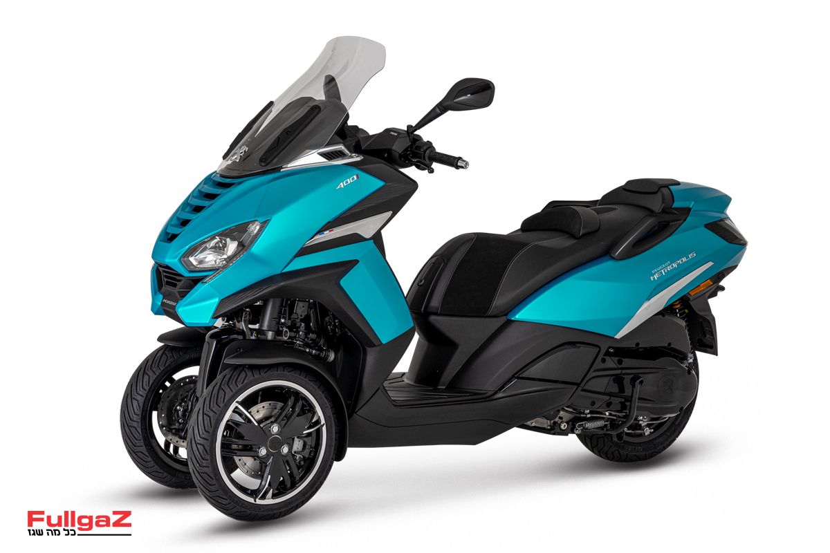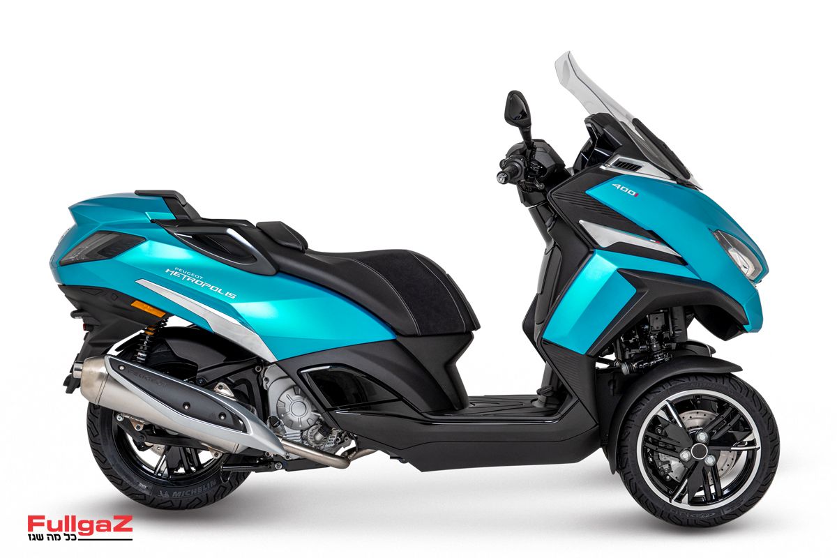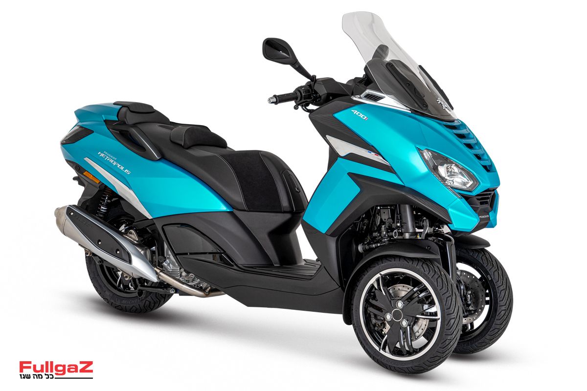 הפיג'ו מטרופוליס 400 מיוצר בצרפת החל מ-2011. הדגם שנבחן כאן קיבל עדכון והתאמה לתקנות יורו 4 בשנת 2017. כעת כבר הושק דגם חדש עם התאמה לתקנות יורו 5, מתיחת פנים, פנסי LED, מסך TFT, ועוד שדרוגים – והוא יגיע ארצה בקרוב. למטרופוליס עיצוב מודרני ברוח רכבי הפנאי של פיג'ו, וכאמור הוא משווק כתחליף למכונית. הוא עוף מעט שונה משאר התלת-נוטים – עם מתלה קדמי ייחודי בעל בולם יחיד שלקוח מעולם המכוניות. יש לציין שקטנוע המבחן הוא אותו הקטנוע שכבר בחנו בעבר, ויש לו כמעט 8,000 ק"מ על השעון.