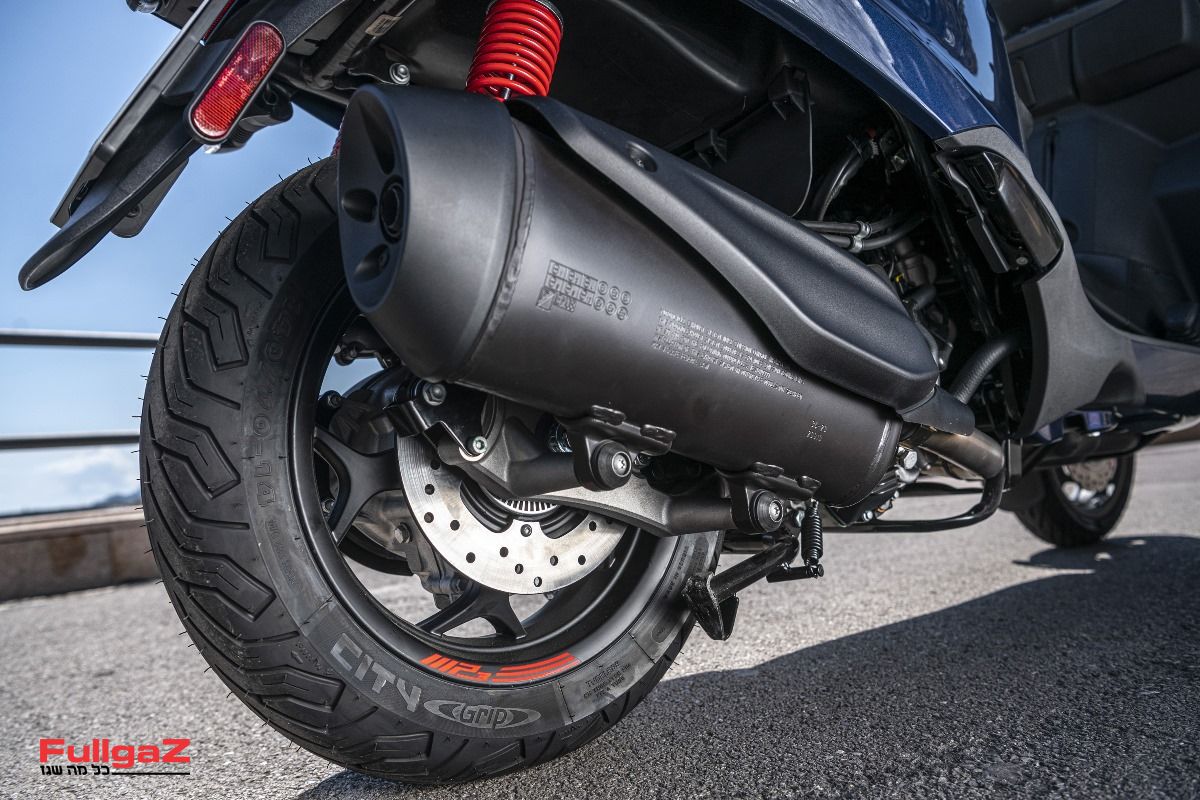 ל-MP3 350 יש מתלים נהדרים, קשיחים אך סופגים, נותנים פידבק מצוין על הנעשה מתחת לרוכב אך יבלעו גם מהמורות עמוקות מבלי לשבור לרוכב את הגב. המתלה הקדמי, למרות המשקל, לא מפריע להיגוי, ובזמן רכיבה קשה להבחין שלא מדובר בכלי דו-גלגלי. כשגלגל אחד פוגש מהמורה השני נשאר צמוד לאספלט כך שהאחיזה נשמרת וכך גם כיוון הנסיעה. ההיגוי ניטרלי, וזהו הכלי היחיד מבין השלושה שלא איבד אחיזה גם בתנאי המבחן המאתגרים ביותר. נכון שרוב הרוכבים רוב הזמן לא יגיעו למצבים כאלו (אלא אם קוראים לכם מתי אהרוניאן), אבל עדיין, חוות הדעת של כל הבוחנים הייתה אחידה – ה-MP3 350 הוא הנבחן עם היכולת הספורטיבית הגבוהה ביותר, ולכן בסעיף המתלים הוא מסיים במקום השני. רגע, שני? למה שני? עברו לפסקה הבאה.
