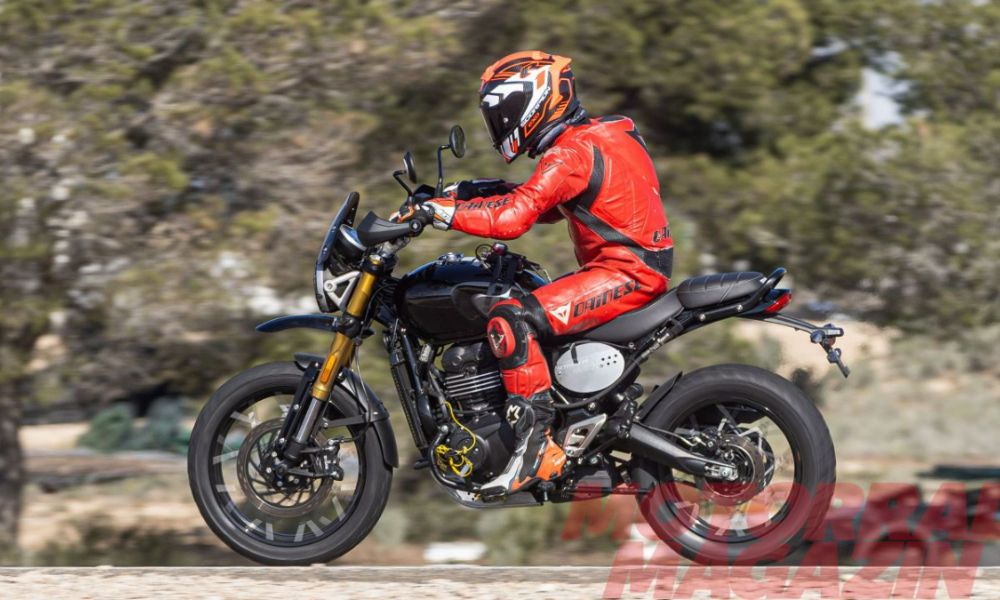 הטריומף סקרמבלר 400X המאופיין בגישת הסקרמבלר, וגרסת ה-XE העתידית, עם חישוק קדמי של 19″, מזלג עם מהלך גלגל ארוך יותר ב-10 מ"מ מלפנים ו-20 מ"מ מאחור לעומת גרסאות הכביש, ובסיס הגלגלים ארוך יותר (1,377 מ"מ לעומת 1,418 מ"מ). הכידון רחב וגבוה יותר, גובה המושב עומד על 835 מ"מ – אולי יותר ב-XE, הדיסק הקדמי גדול יותר ב-20 מ"מ (320 מ"מ), ויש מערכת ABS הניתנת לניתוק על הגלגל האחורי. כל זה מתבטא ב-9 ק"ג נוספים למשקל המלא, העומד על 179 ק"ג. מבחינת אבזור, אנחנו מצפים לתאורת LED היקפית, שקע USB לטעינה ולוח שעונים המשלב LCD ושעון מהירות אנלוגי.