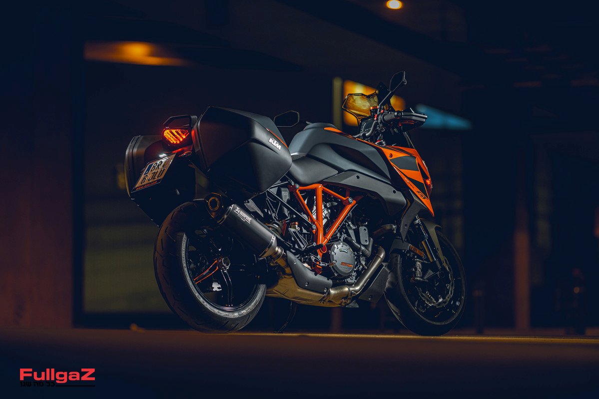 המנוע נלקח כמו שהוא ועבר לכאן – וי-טווין ענק בנפח 1,301 סמ"ק, ואפילו עם אותם 173 כוחות הסוס הגדולים ו-14 הקג"מ השריריים. גם השלדה היא אחת לאחת מה-1290 סופר דיוק R, וכך גם הזרוע האחורית, אך מכאן ואילך האופנוע הותאם להיות GT – גרנד-תורר חזק ונוח לקיצור מרחקים ארוכים. בולמי ה-WP כאן הפכו להיות חשמליים סמי-אקטיביים, עבודת גוף שונה מותאמת לספורט-תיור. מיכל הדלק שגדל ל-23 ליטרים, מושב גדול יותר עם אג'נדה לנוחיות-ספורטיבית, יחידת הזנב חוזקה לנשיאת משקלים של הטיולים, וחופה קדמית הכוללת מגן רוח מתכוונן ידנית.