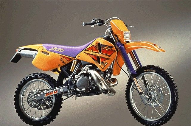 מבחינה ויזואלית, מידות ומכלולים – הדגם נראה בדיוק כמו ה-300 סמ"ק. המנוע, לעומת זאת, גדל בנפחו ל-353.7 סמ"ק מקוררי נוזל עם קדח בוכנה של 78 מ"מ ומהלך של 74 מ"מ. אין בדיוק נתוני הספק, אך כל מי שרכב עליו במקביל ל-300 טען שהמומנט מורגש יותר ויש פיצוץ של כוח בסל"ד בינוני ומעלה שמורגשים מאוד על 113 הק"ג של הדגם. רוכב המוטוקרוס שיין קינג הניו זילנדי קטף את אליפות העולם למוטוקרוס בקטגוריית ה-500 סמ"ק באותה השנה עם דגם המוטוקרוס של ה-360, שנקרא 360SX. עד כדי כך זה היה חזק. דגמי האנדורו של אז הוזנו דרך קרבורטור, הונעו ברגל והציעו חמישה הילוכים, מצמד מכני מאתגר ומיכל דלק שמתרוקן ברגע. זה גם היה הק.ט.מ הראשון שהגיע בצבע כתום-דבש החדש (שדהה ללבן בשמש) וכלל מזלג מרזוקי קונבנציונאלי מלפנים ובולם אחורי בחיבור של לינק של WP (אז עוד קראו להם White Power).