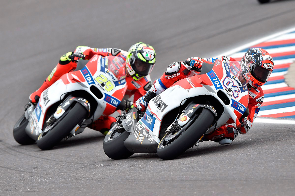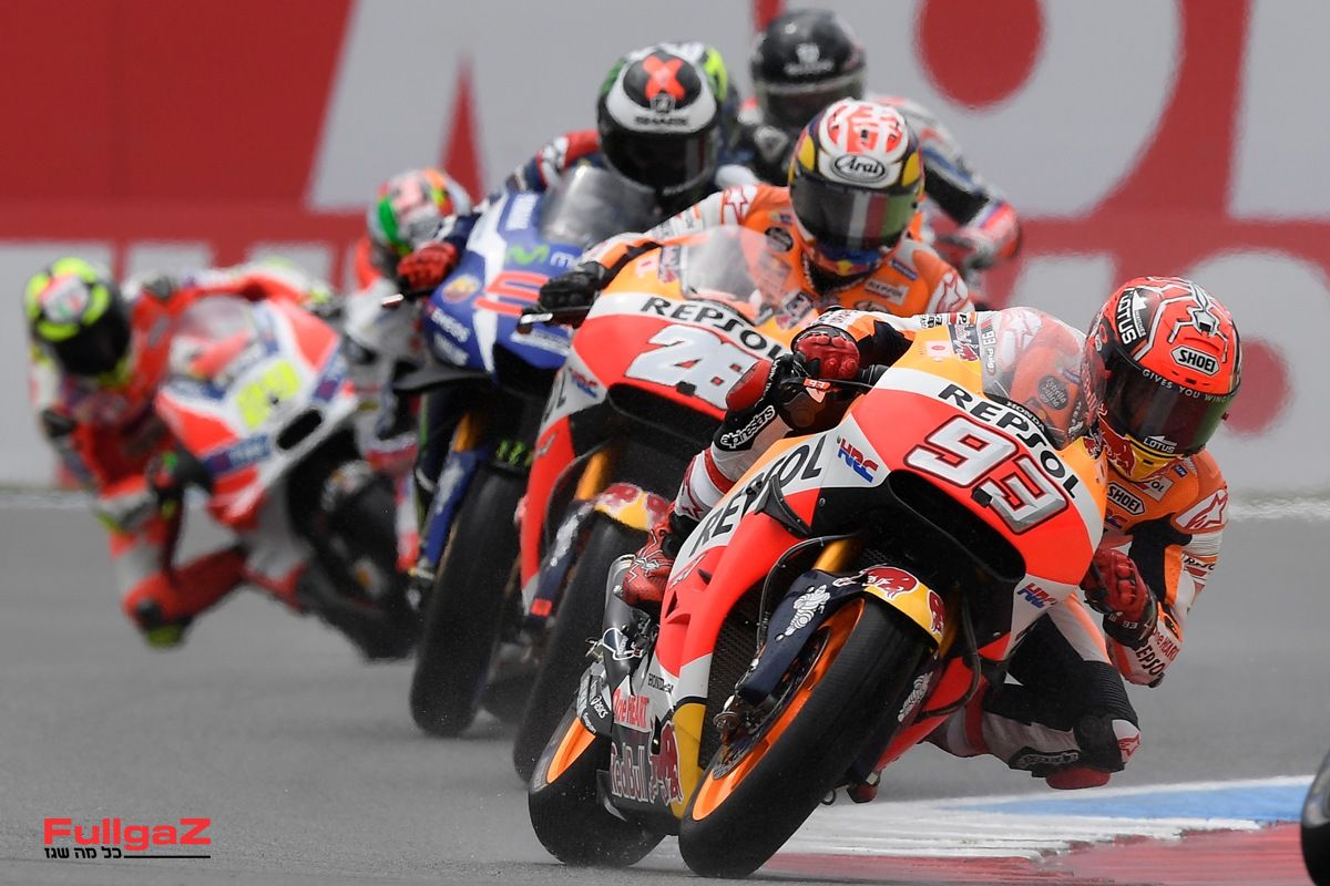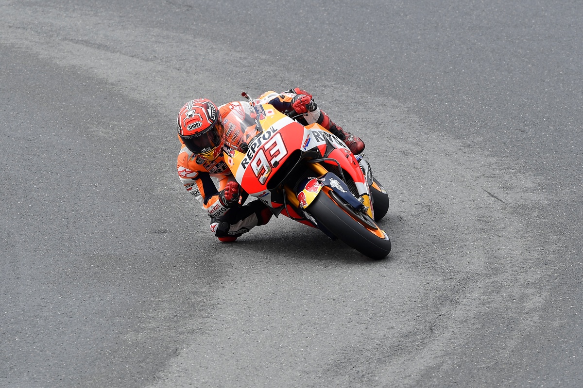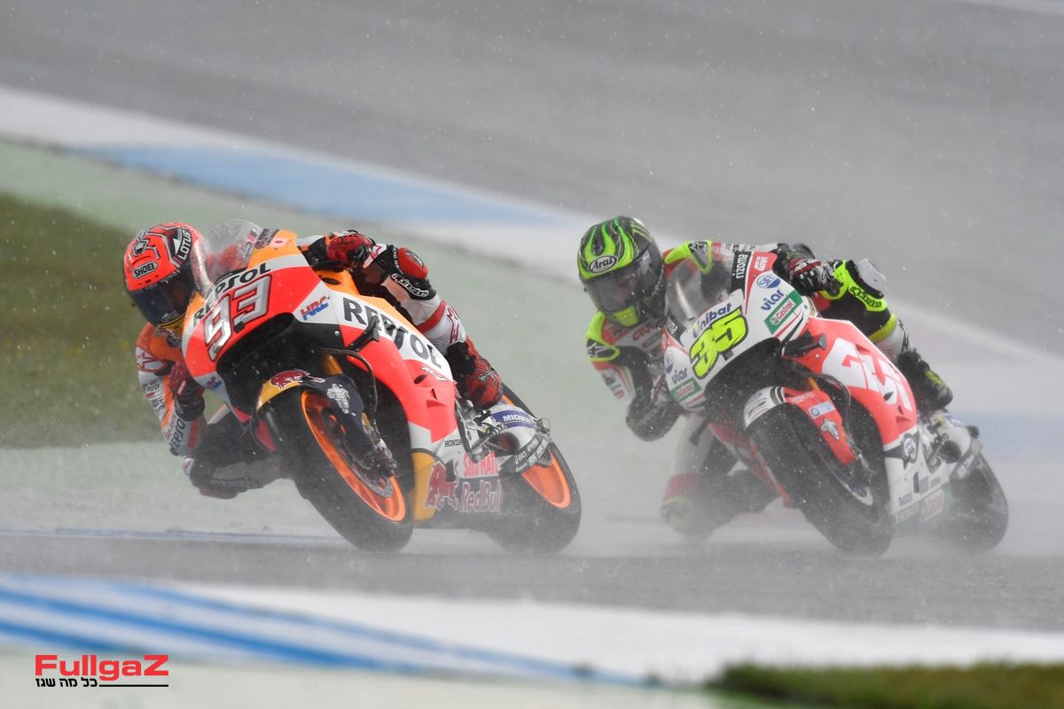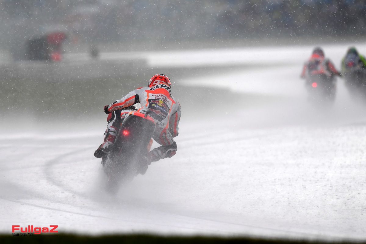 צל"ש לרוכב ולקבוצה. סנטי הרננדז, ראש הצוות של מרקז, נועל את האופנוע השני בצמיגי סליקס, קדימה ואחורה, כשהוא מכיר את סגנון הרכיבה החופשי של הנמלה המהירה בתבל. מרקז שב אל המסלול, וכבר אחרי הקפה אחת לחימום הצמיגים הוא מהיר ב-2 שניות מיאנונה עם צמיגי האינטרמדייט וב-7 שניות מרוכבי החוד שעדיין רוכבים על צמיגי גשם.