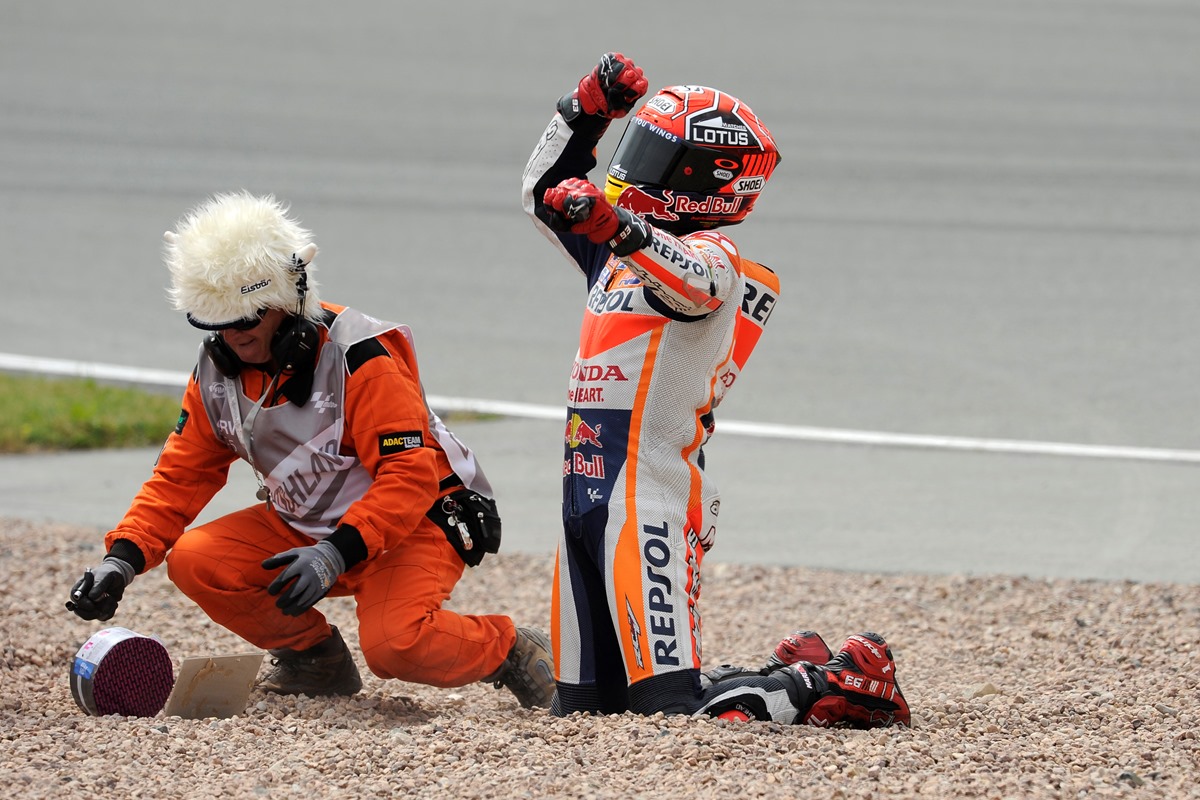 "ככה המשכנו לתוך מקצה הדירוג כשיש לי ביטחון לדחוף על סט צמיגים אחד, אבל אז נתקלנו בעוד בעיה". מרקז נפל בסיום מקצה האימון ובמבחני הדירוג חווה התנהגות קיצונית של האופנוע, אפילו במונחים שלו. מרקז כמו מרקז, לא ממש מתרגש מאופנוע שזז תחתיו, המשיך עוד שתי הקפות וקבע את הזמן השני בטיבו – זמן המעניק לו כרטיס כניסה למקצה דירוג 2. אבל אז יוני הרננדז על צמיגים עדיפים חטף את המקום השני ממרקז, והותיר לו את המקום ה-13 על הגריד.