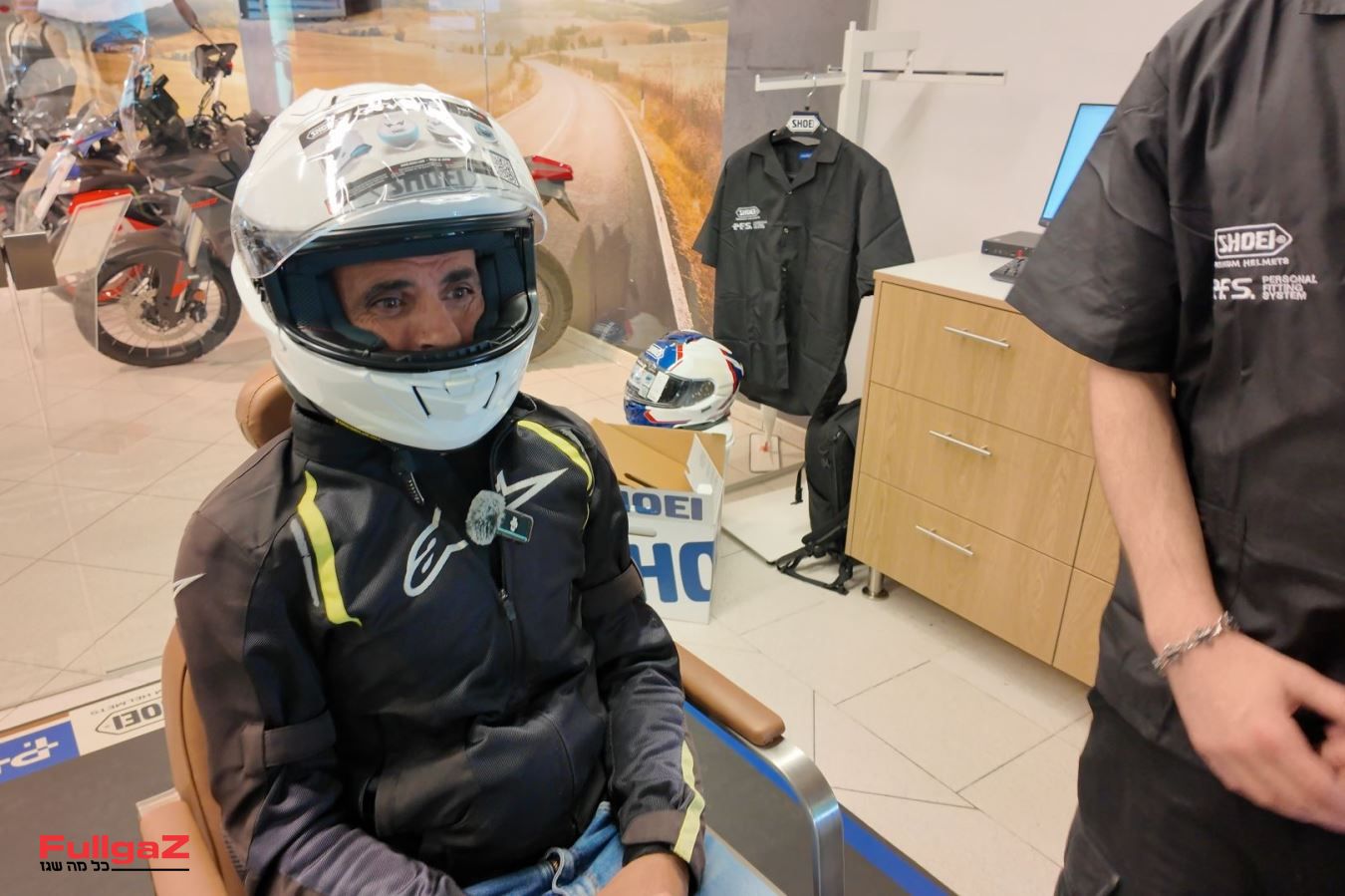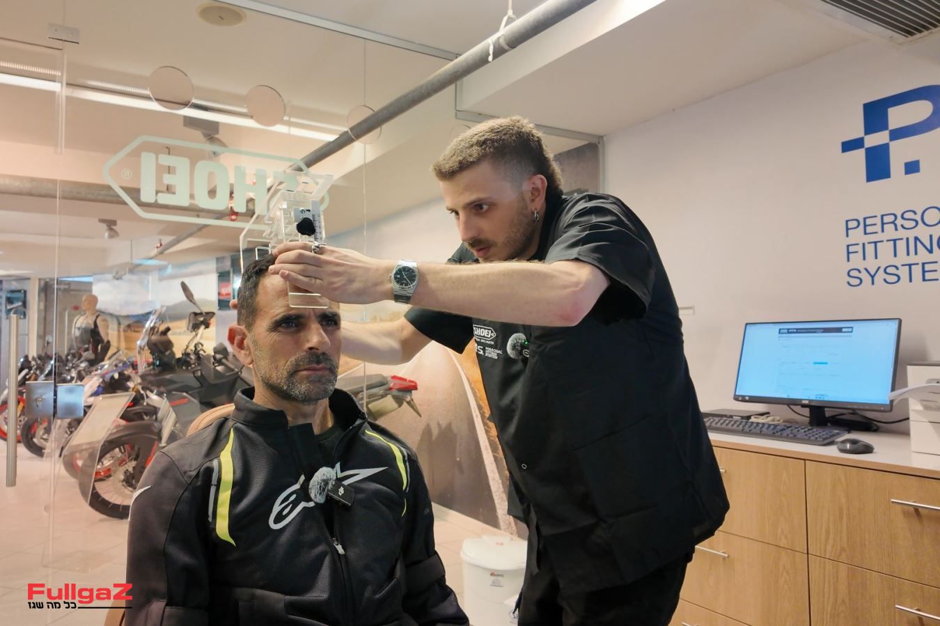ב-SHOEI החלו להציע את שירות ההתאמה האישית לקסדת הרוכב בשנים האחרונות, כשעד עכשיו יש 6 נקודות באירופה שמציעות את שירות ה-PFS, ואבזריון היא הנקודה השביעית. במסגרת השירות, טכנאים מוסמכים של SHOEI, שעברו השתלמות ב-SHOEI אירופה על ה-PFS, מודדים עם ציוד מדידה ייעודי את ראש הרוכב, מזינים את הנתונים למערכת של SHOEI, והמערכת מספקת מידע מדויק על מידות הקסדה שמתאימות לרוכב הספציפי, וכן את תוספות הריפוד שצריך להוסיף לריפודים כך שהקסדה תתאים בדיוק לראש הרוכב.