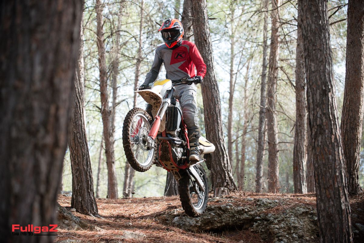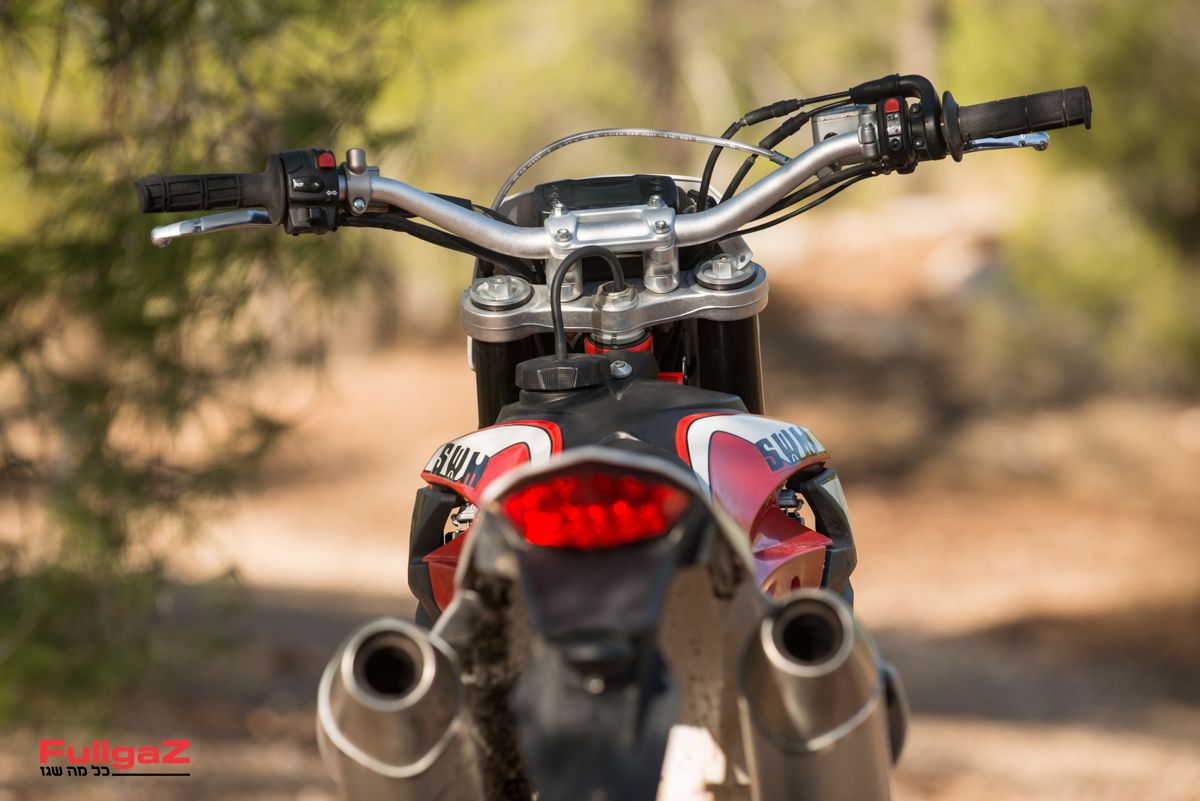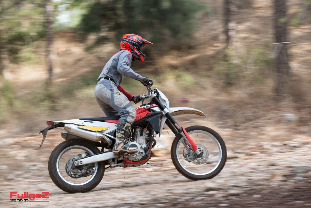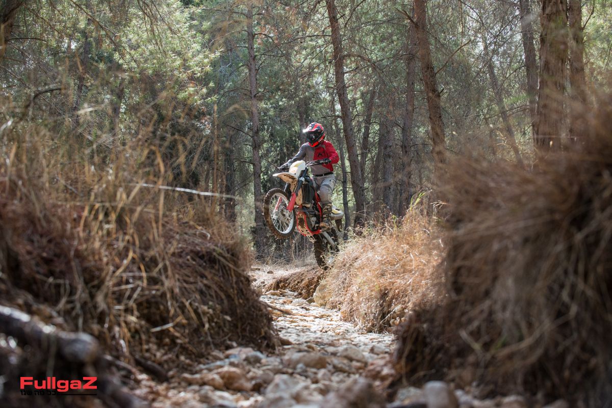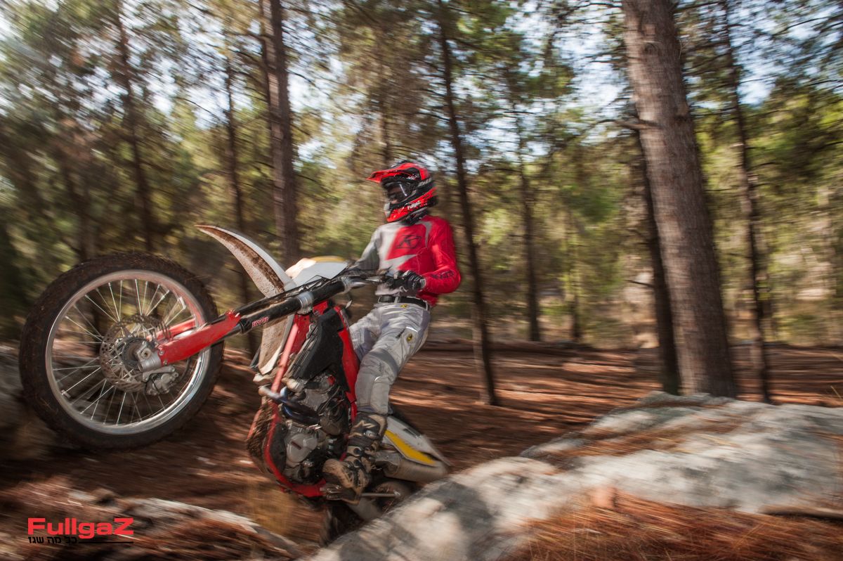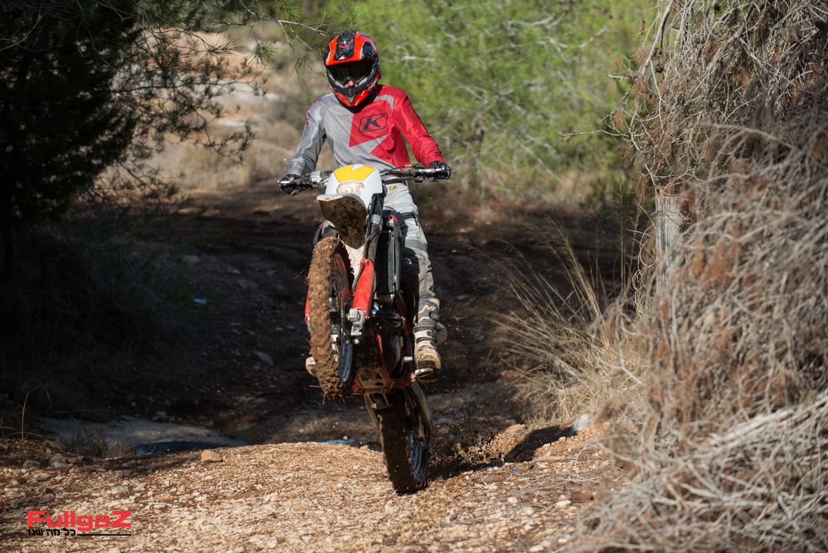 קל מאוד להזיז אותו מצד לצד, למשל ברכיבת סינגלים מהירה, ולא פחות חשוב – המנוע משתף פעולה היטב עם רכיבה שכזו ומספק עקומת כוח ליניארית וחזקה. כשרוצים להרים את הגלגל הקדמי לפני מכשול, דאבל קלאץ' יעשה את זה גם בהילוך שלישי ואפילו רביעי, והקלאץ' ההידראולי מאוד נעים לשימוש. המתלים, כאמור, סופגים היטב ומספקים ביטחון רב, וכמעט ולא נתקלנו במצבים שבהם מכשול מזדמן גורם לחוסר יציבות שמאיים להעיף את האופנוע מהקו. מאוד מרשים.