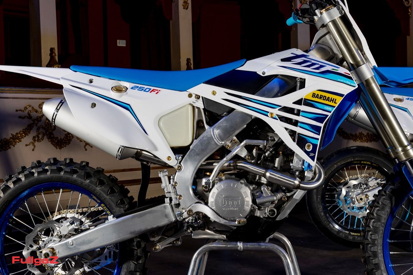 האופנוע שבמבחן הוא אמנם משנת הדגם 2012 משום שבעת ביצוע המבחן דגמי 2013 טרם הגיעו ארצה, אך שסתום הכוח ומערכת ההצתה, וכן מערכת הפליטה שבו, שודרגו לאלו של 2013. האופנוע הגיע עם אוהלינס מאחור ומרזוקי 50 מ"מ קארטרידג' סגור מלפנים. גם הגרפיקה היא כשל 2012, כשבבסיסה היא כחולה. פרט לבולמים ה-TM מציע המון כל טוב וחלקי קצה כמו כידון של רייקון ותושבות מאלומיניום מכורסם, ובגדול יש הרבה השקעה בפרטים הקטנים. העיצוב שלו נראה אמנם המיושן ביותר מבין השלושה, אך מביני עניין שיחקרו עם העיניים את האופנוע יגלו שלא חסכו כאן והשתמשו בחלקים הטובים ביותר שבנמצא. בהחלט מרשים.