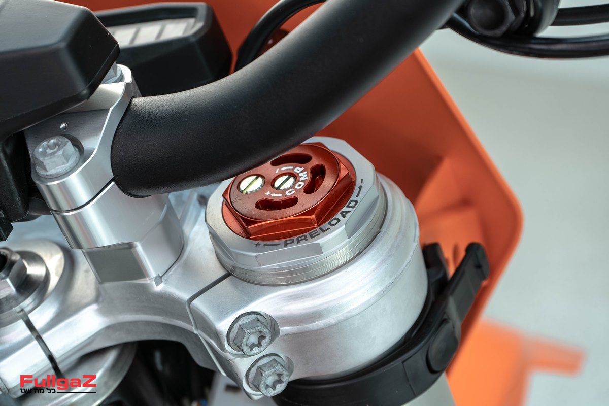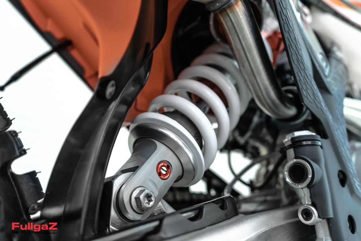 מלפנים מותקן מזלג הפוך של WP מדגם XACT PRO בקוטר 48 מ"מ, עם קארטרידג' סגור ובטכנולוגיית Cone Valve, מאחור בולם של WP המיועד כמובן למרוצים ועומס גבוה, והבלמים של ברמבו – כולם בסט-אפ המכוון לתנאים ולעומסים הקשים ביותר. נציין שרכבנו לאחרונה על הק.ט.מ 890 אדוונצ'ר R ראלי החדש (מבחן יתפרסם בקרוב) המגיע עם מערכת הבולמים הזאת, ואנחנו יכולים להעיד מיד ראשונה על האיכות והרמה הגבוהה של הסט.